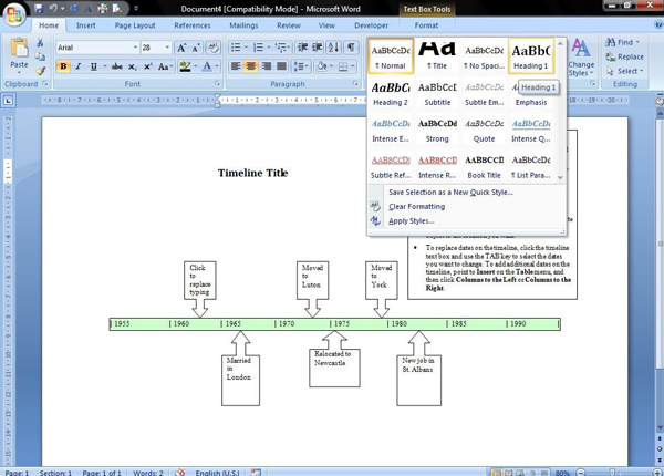 Soldan, Sagdan, ortadan ve çubuk sekmelerini kullanmak