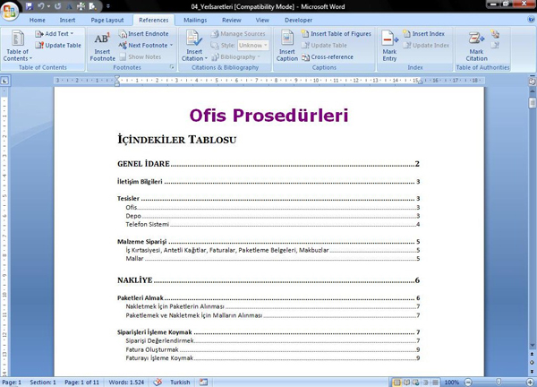Alt ve üst bilgi ekranlanni kullanarak yazar, olusturma